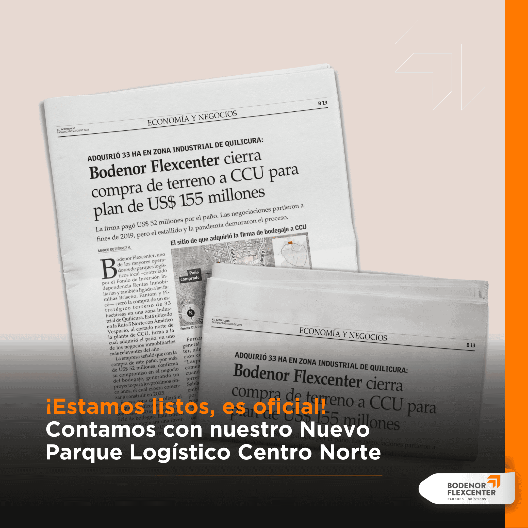 Bodenor Flexcenter cierra compra de terreno a CCU para plan de US$ 155 millones
