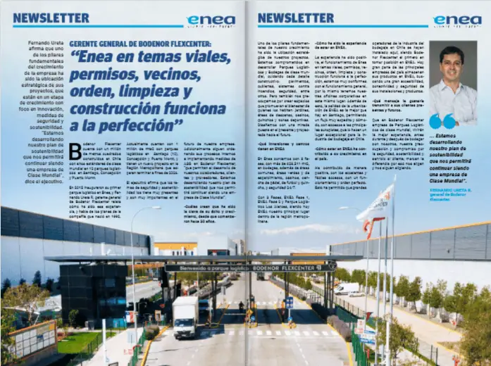 El gerente general de Bodenor Flexcenter, Fernando Ureta, fue entrevistado por ENEA, instancia en la que compartió la visión y proyecciones de la compañía, además de destacar el rol clave que ha tenido este polo logístico en el crecimiento de la empresa.