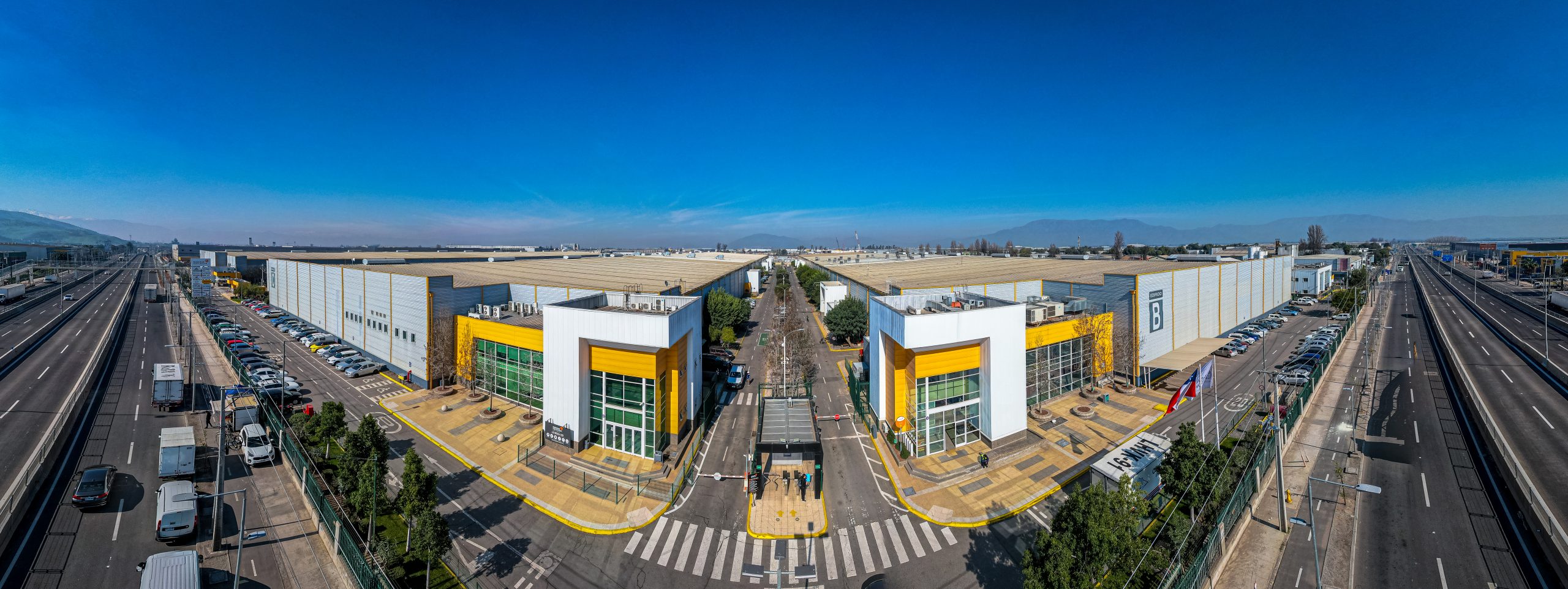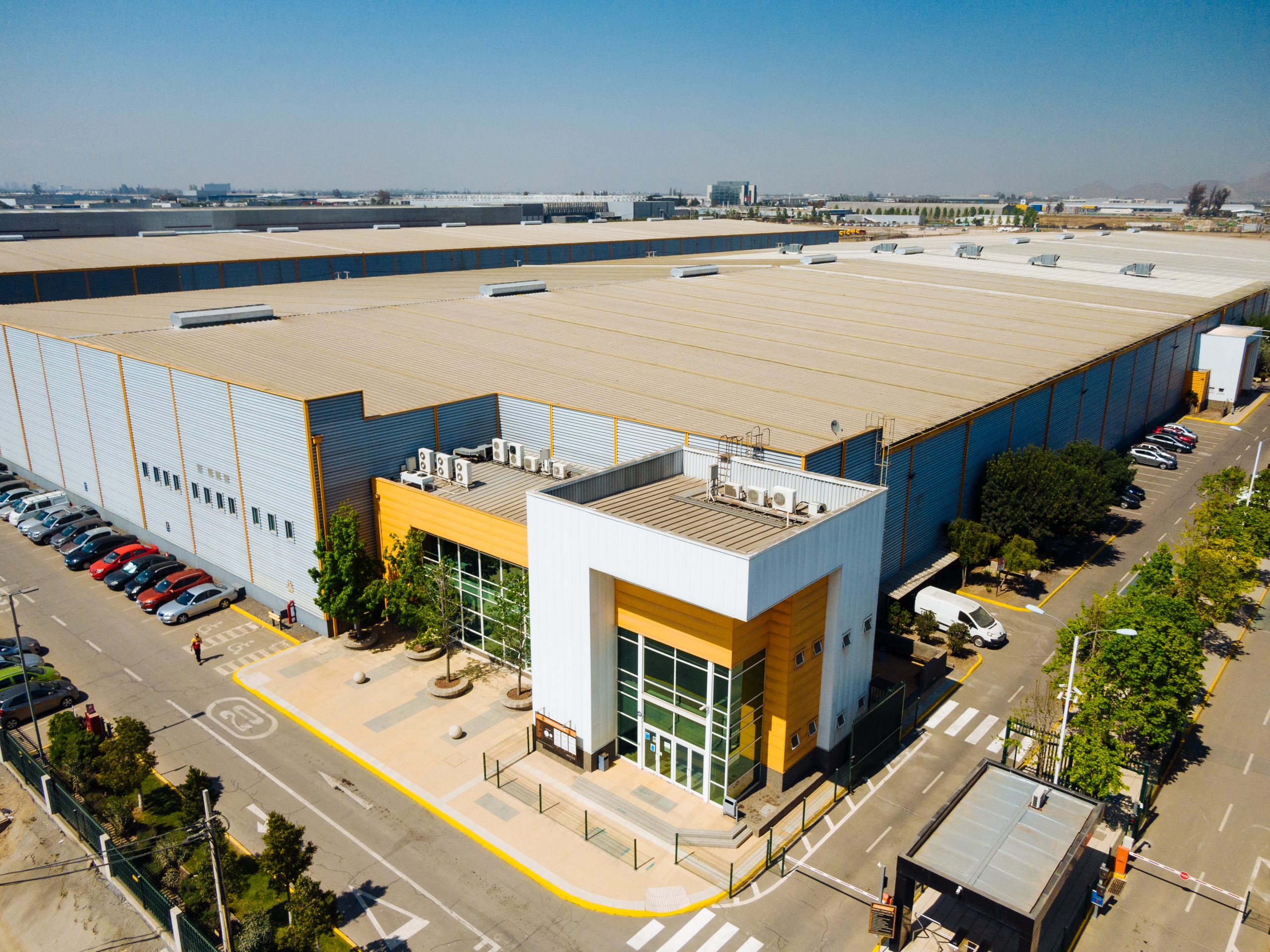 Almacenes con 11 mts de altura libre, amplios patios de maniobras, luz natural al interior de las bodegas, renovación de aire mediante sistemas naturales, andenes de carga y descarga con niveladores y oficinas integradas.