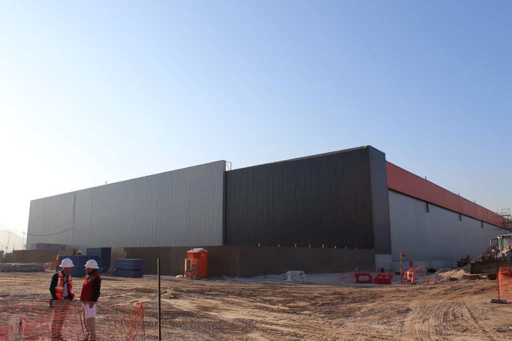 Hoy, la construcción de su primera nave muestra avances sólidos y consistentes. Con una superficie cercana a los 38.000 m², ya alcanzamos un 85% de avance en revestimiento y un 80% en cubierta, reflejando un ritmo de obra eficiente y una ejecución rigurosa. En paralelo, continuamos con la ejecución del piso de hormigón por paños, asegurando la calidad final de la operación.